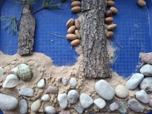 Vykdant projektą „AKMENUKŲ SIMFONIJA ČIURLIONIUI“, ikimokyklinio ugdymo skyriaus vaikučiai klausėsi M. K. Čiurlionio simfoninės poemos „Miške“, „Jūra“ fragmentų. Mokytojos vaikams sekė pasaką apie akmenuką keliautoją. „Pelėdžiukų“, „Žirniukų“, „Meškiukų“ grupių vaikučiai, įkvėpti muzikos garsų, pabandė iš akmenėlių sudėlioti paveikslus, piešti ant akmenukų, kurti kūrybines kompozicijas.