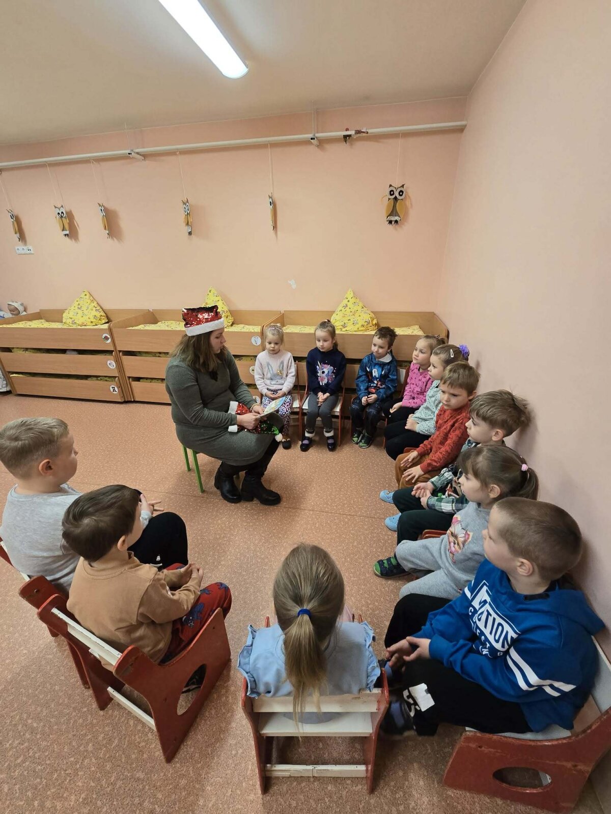 Smagias, įdomias pasakas mažiesiems skaitė specialioji pedagogė Sima ir logopedė Jūratė. Vaikučiams smagu buvo klausytis socialinės pedagogės Violetos skaitomų pasakų. Kokie susikaupę, susidomėję ir kaip smalsiai vaikai klausėsi Kalėdinių skaitinių. Tai ir yra maži širdimi juntami stebuklai. Kuomet vartydami knygą kalbamės, čiauškame ir girdime… vos vos, bet jau skambančius Kalėdų varpelius…Din dilin…